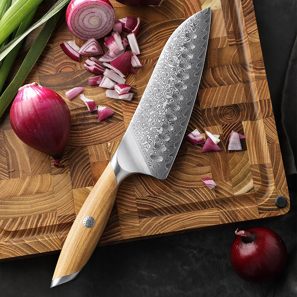 Durch seine außergewöhnliche Schärfe und das ausgewogene Design ist das Santokumesser ideal für feine Scheiben, gleichmäßige Würfel oder das schonende Hacken frischer Kräuter – ein echtes Allround-Talent für jede Küche.