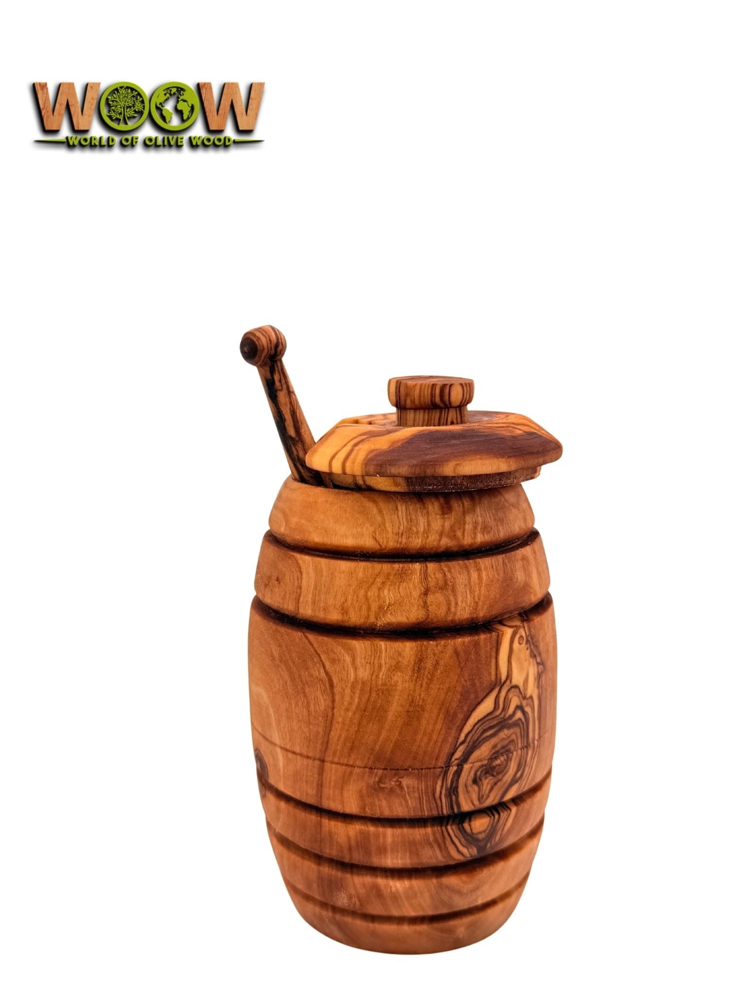 Ob für Honig, Sirup oder andere süße Leckereien – dieses Gefäß vereint Funktionalität mit zeitloser Eleganz. Dank der dichten Holzstruktur bleibt der Inhalt gut geschützt, während die warme Farbgebung des Olivenholzes jedem Tisch eine gemütliche Note verleiht.