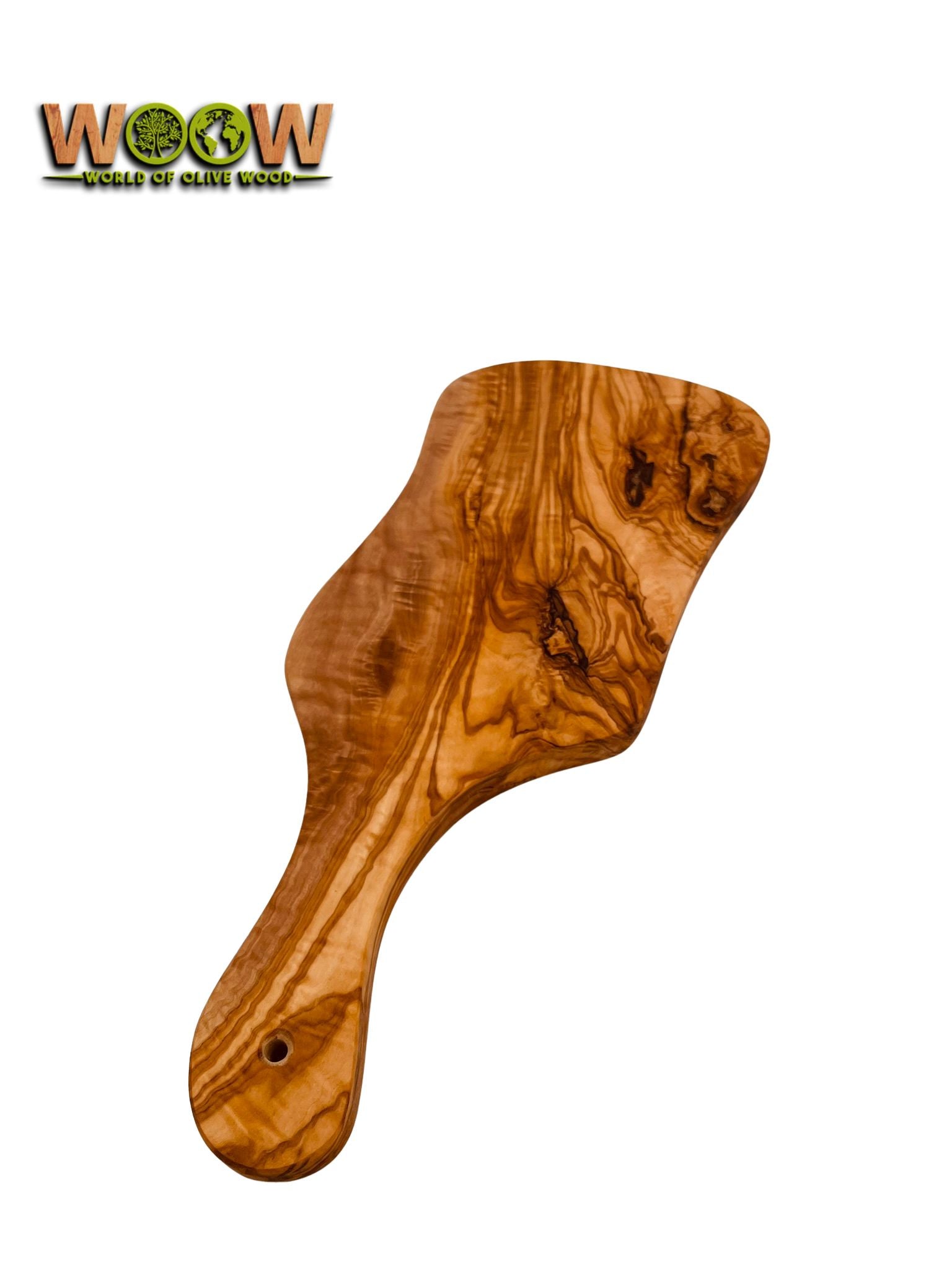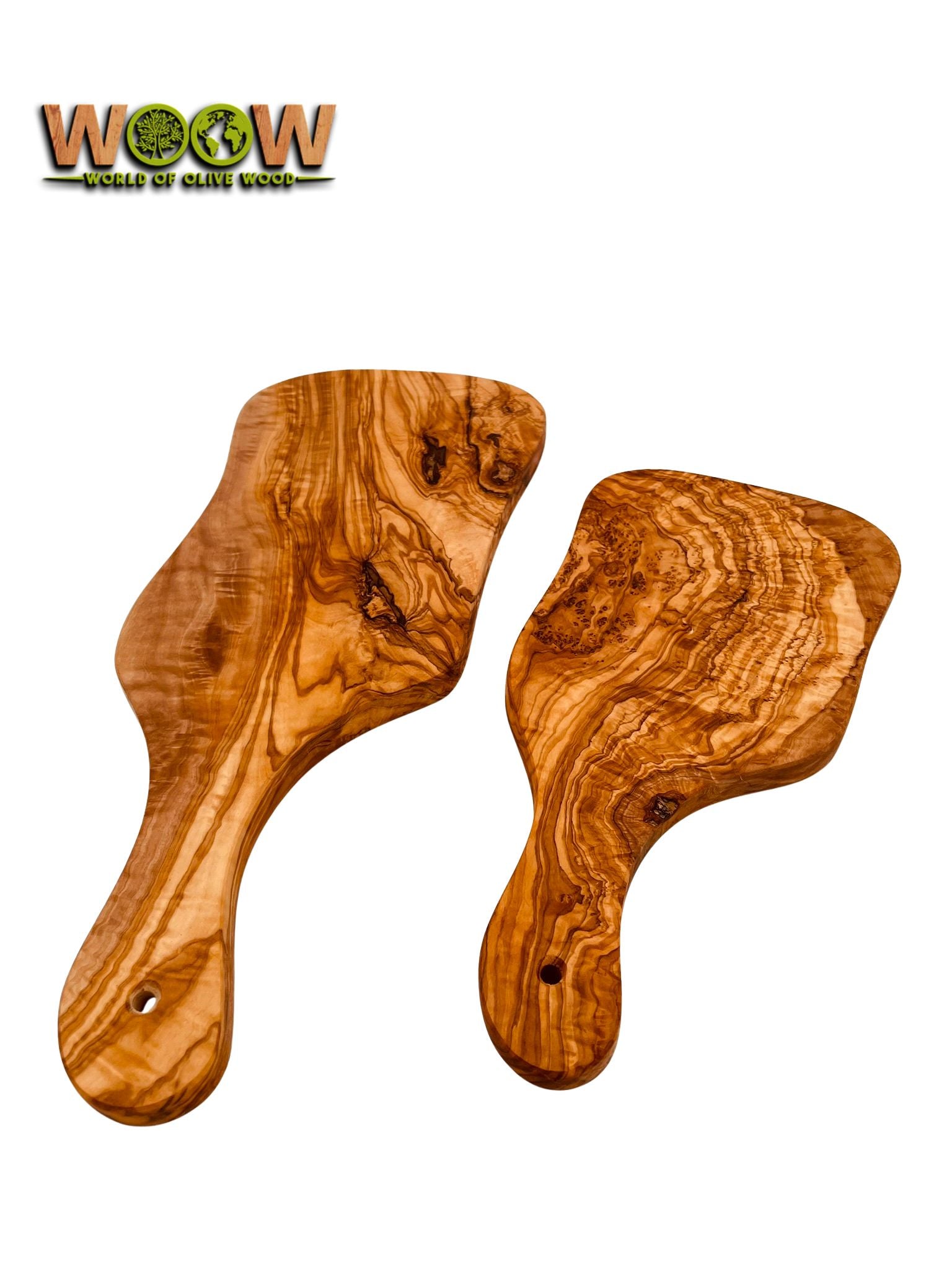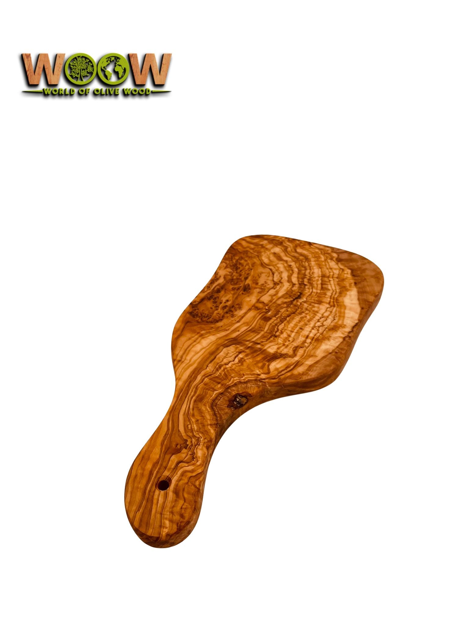 Dieses handgefertigte Schneide- und Servierbrett aus Olivenholz vereint natürliche Schönheit mit maximaler Funktionalität. Der praktische Griff sorgt für sicheren Halt und macht das Brett ideal zum Schneiden, Servieren oder stilvollen Anrichten von Käse, Brot, Wurst und Snacks.