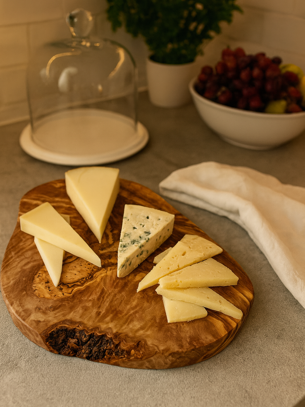 Rustikales Käsebrett aus Olivenholz – Natur pur auf dem Tisch