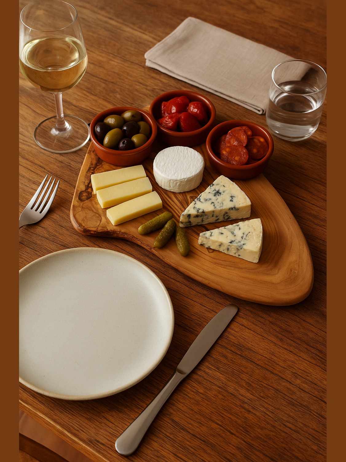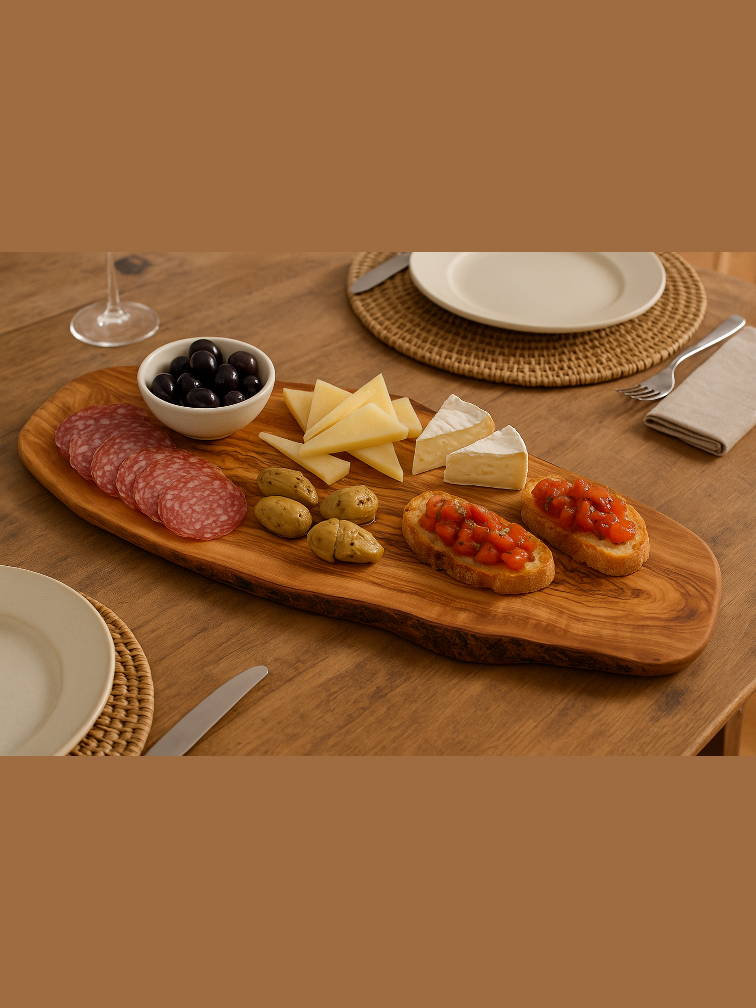 Rustikales Olivenholzbrett – perfekt für Tapas & Käseabende