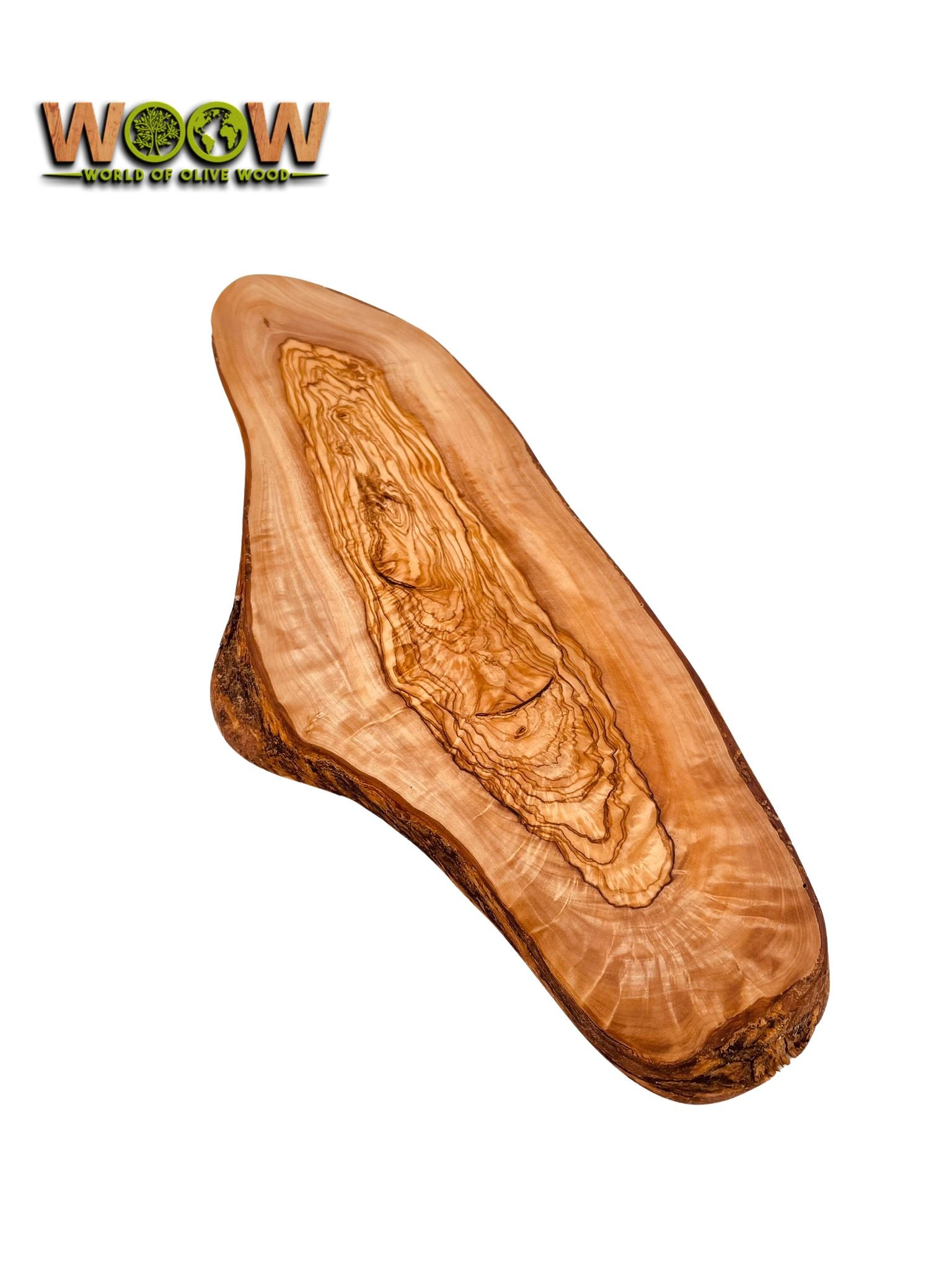Dieses außergewöhnliche Schneide- und Servierbrett aus massivem Olivenholz bringt mediterranes Flair direkt auf deinen Esstisch. Mit seiner natürlichen Form und der einzigartigen Maserung ist jedes Brett ein unverwechselbares Unikat.