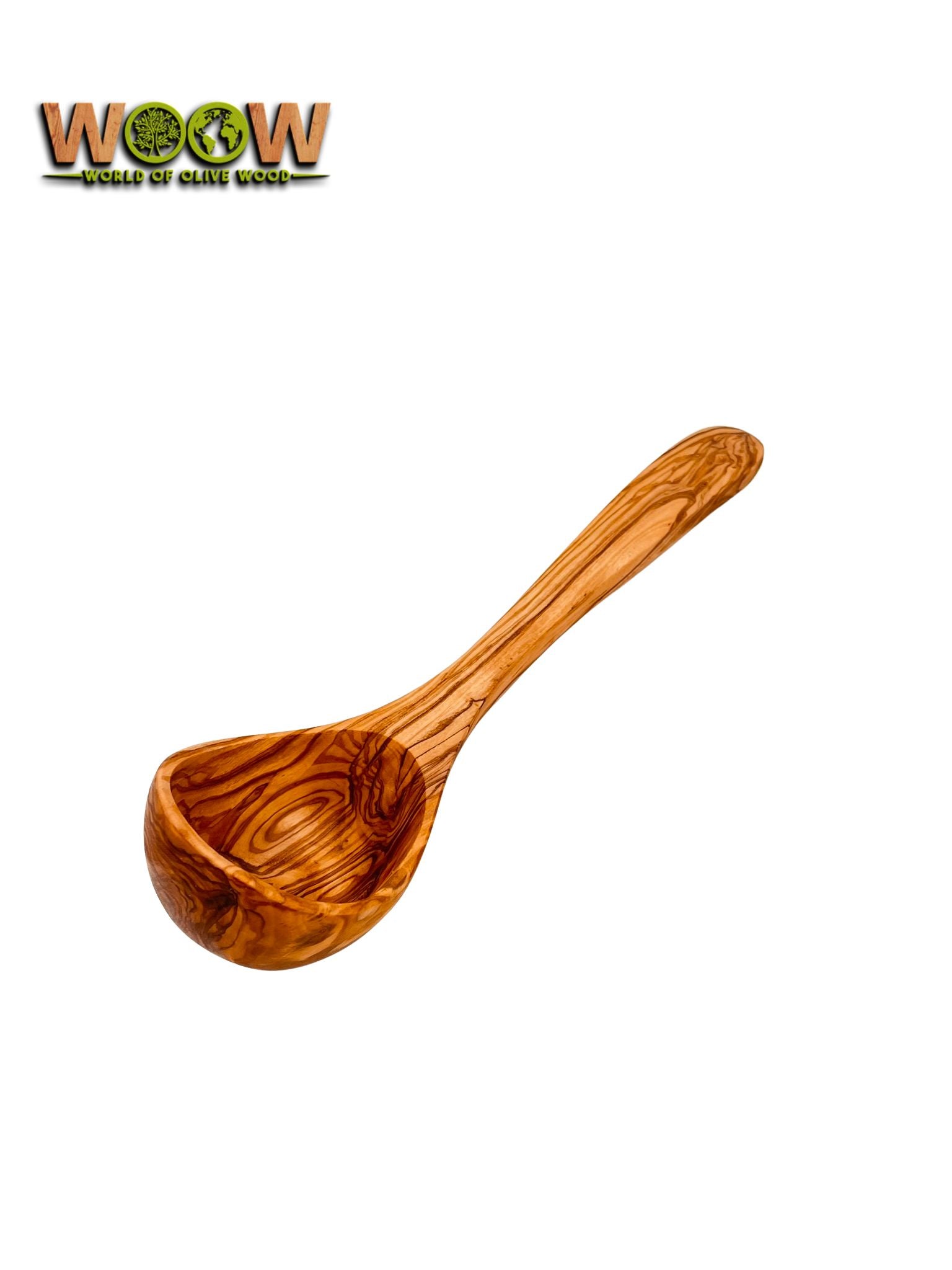 Diese Schöpfkelle aus edlem Olivenholz bringt mediterranes Flair direkt in deine Küche. Ob Suppe, Soße oder Eintopf – mit ihrer einzigartigen Maserung wird jede Bewegung zum Hingucker. Dank der robusten und antibakteriellen Eigenschaften des Olivenholzes ist sie nicht nur schön, sondern auch praktisch und langlebig.