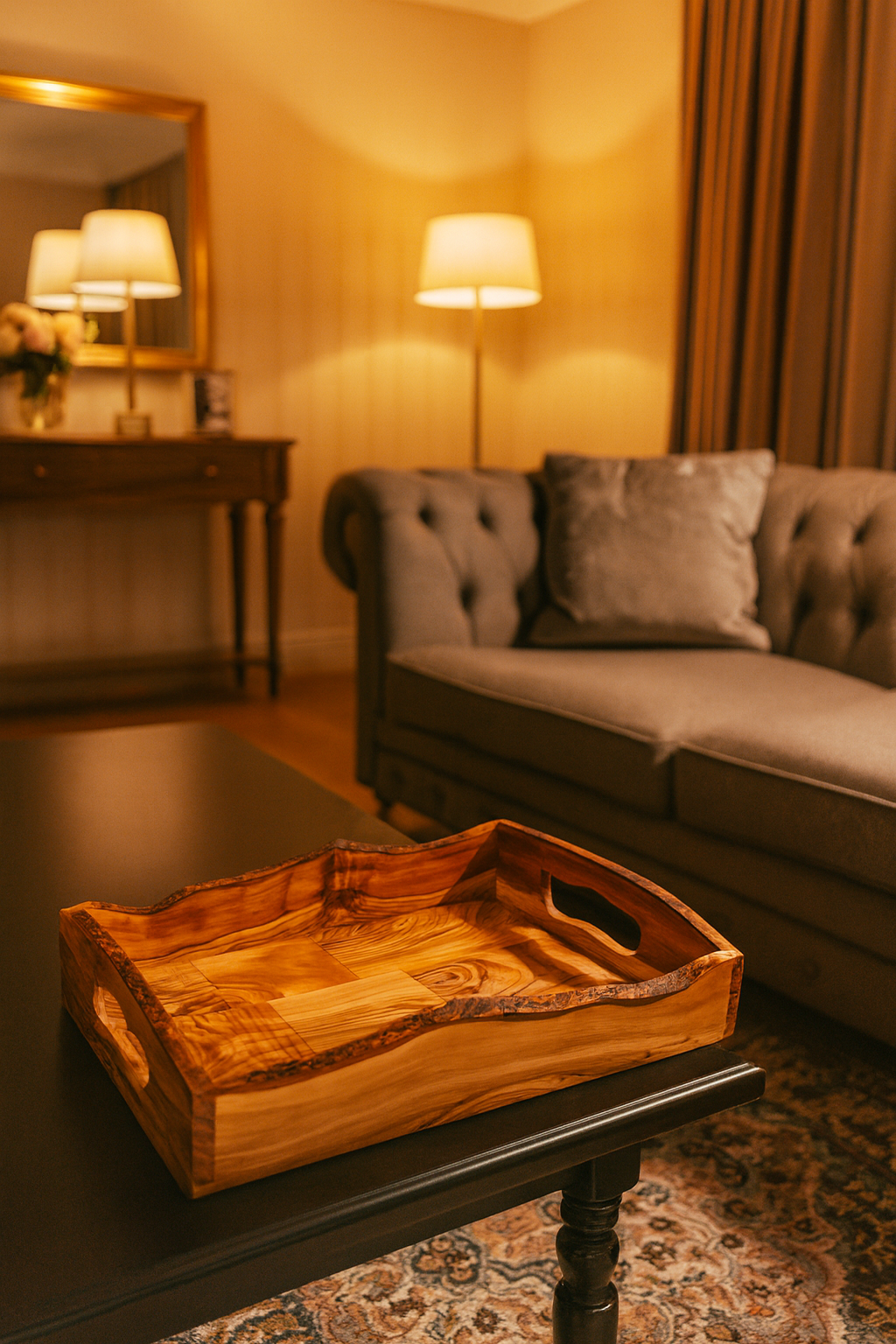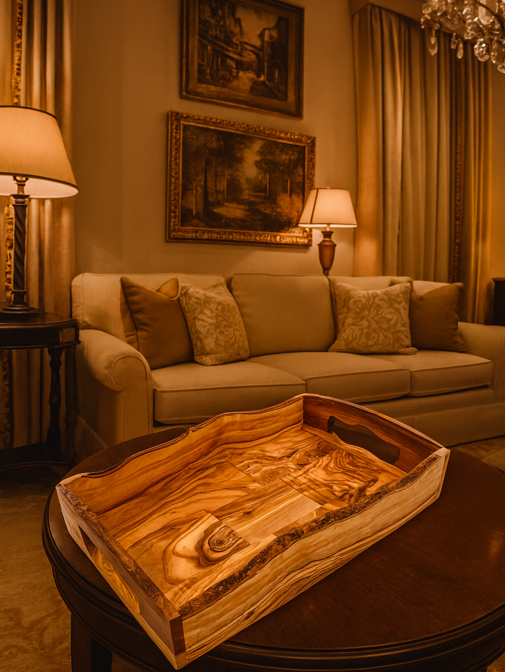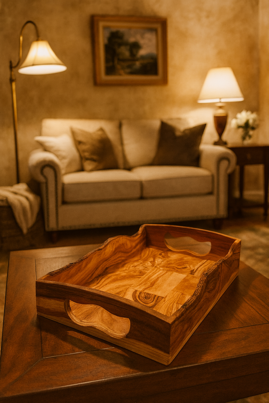 Natürlich edel servieren – das Olivenholz-Tablett mit Griffen