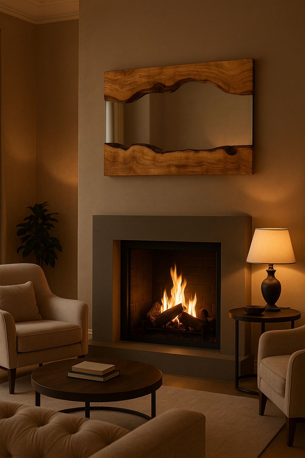 Die Kombination aus klarem Spiegelglas und den rustikal geschwungenen Olivenholz-Elementen macht jedes Stück zu einem unverwechselbaren Unikat. Ob im Flur, Schlafzimmer oder Wohnzimmer – er setzt warme Akzente und bringt zeitlose Eleganz in jedes Zuhause.