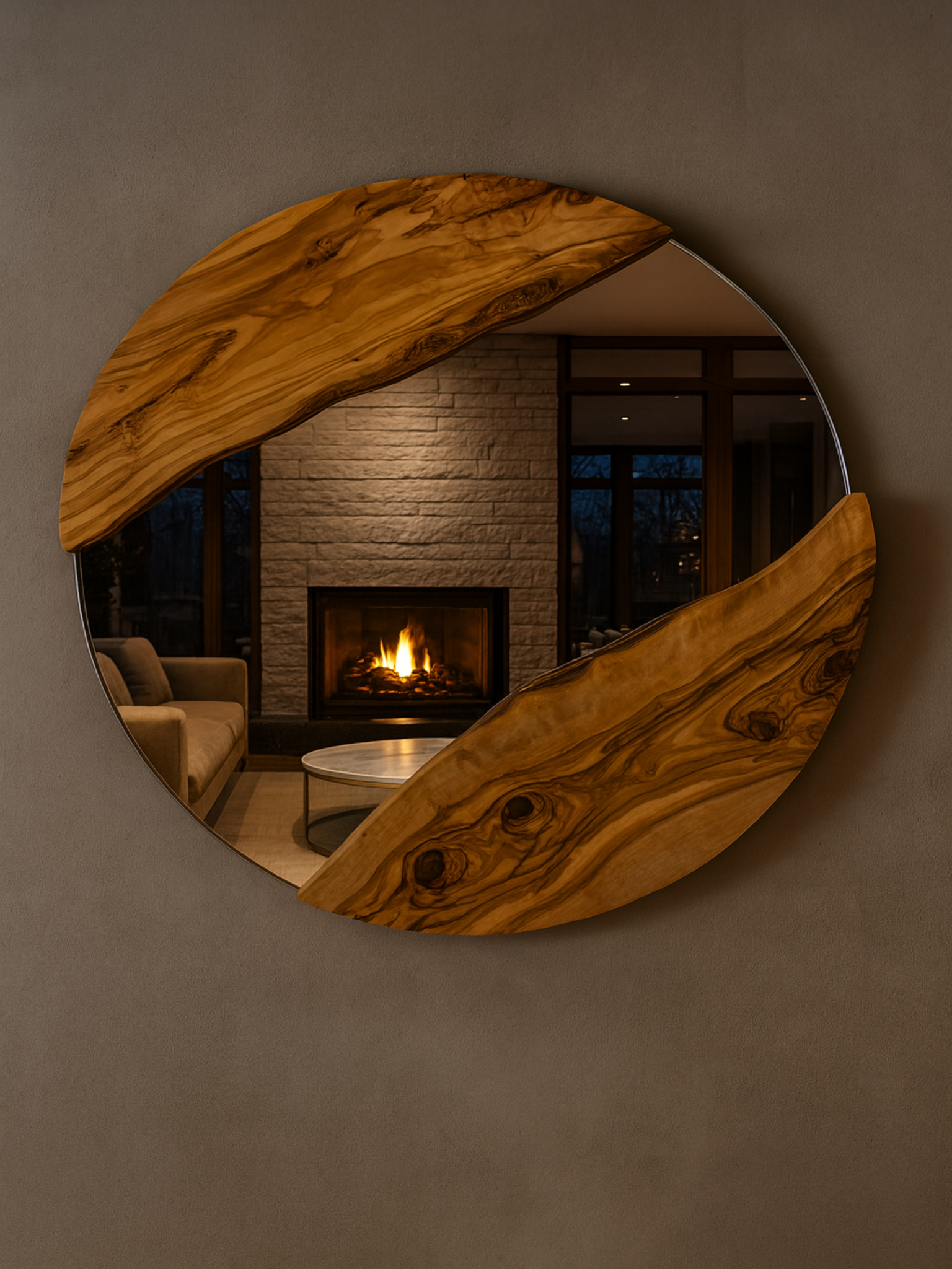 Runder Olivenholz-Spiegel – 45 cm Design & Natur im Einklang
