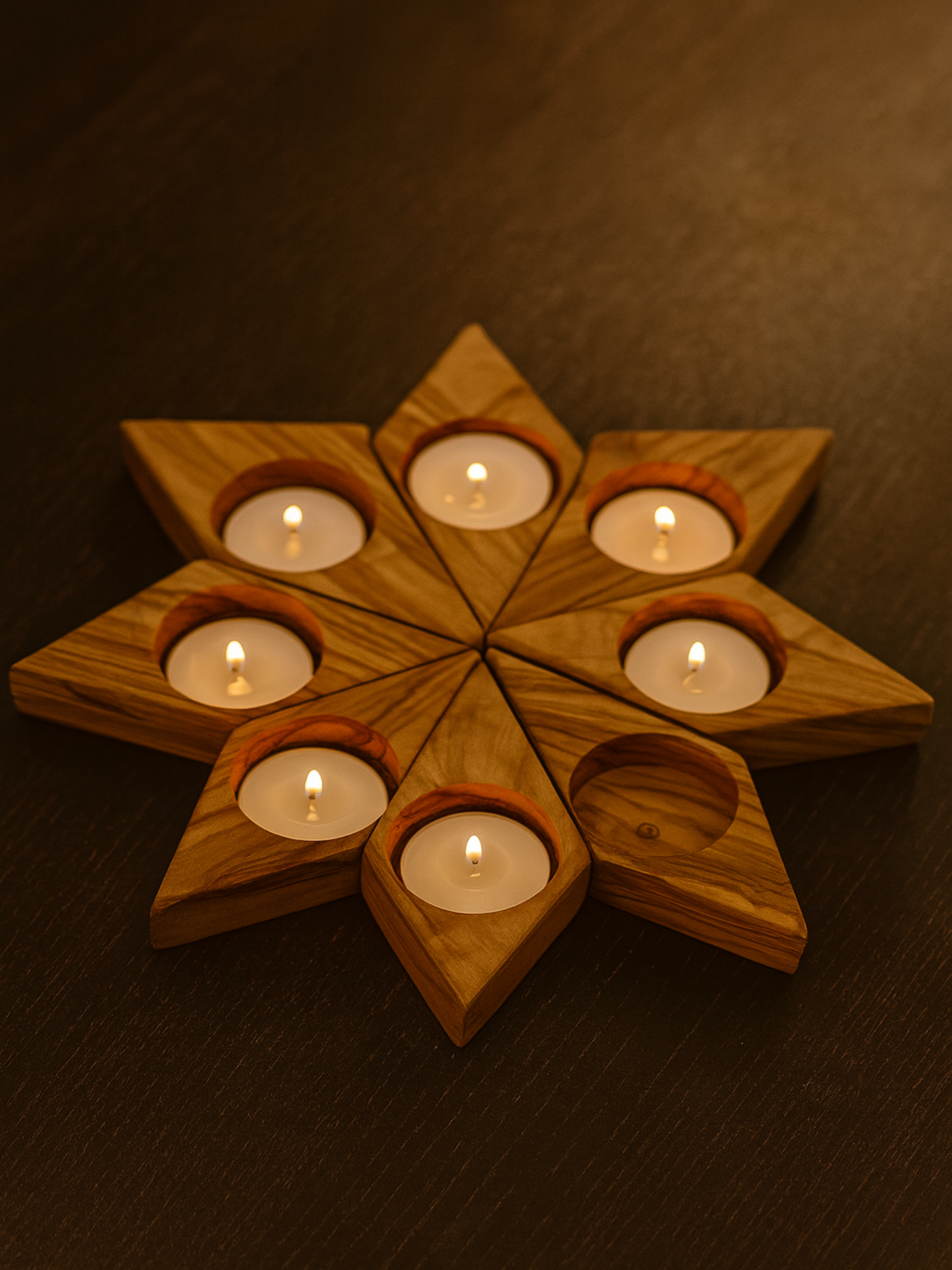 Sternenzauber – 7er Teelichthalter aus Olivenholz