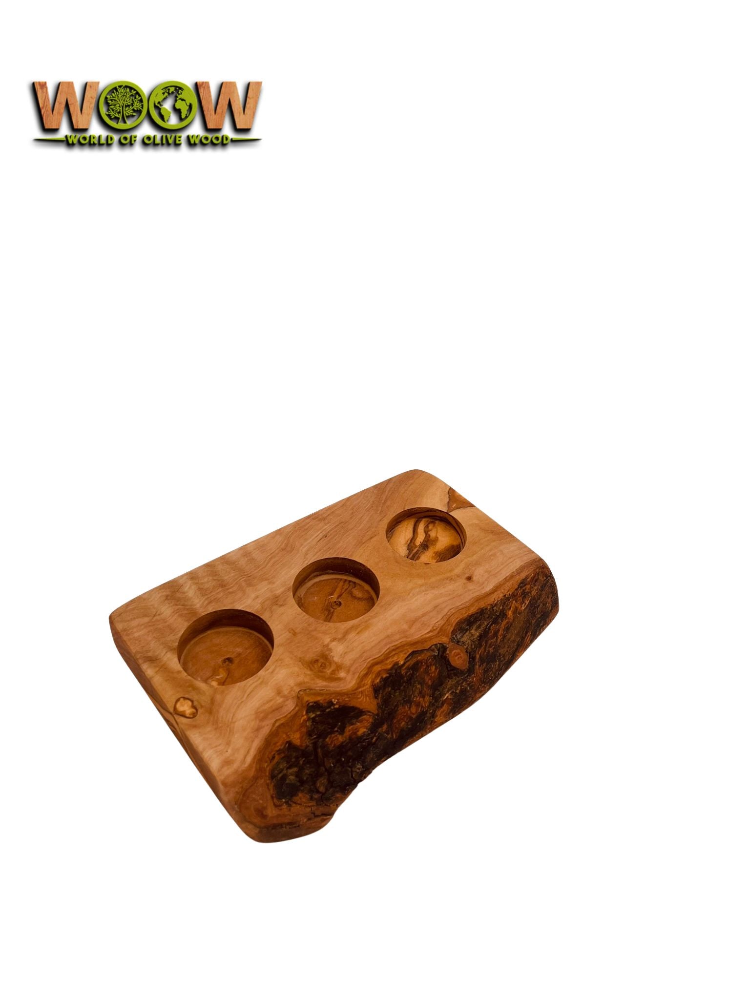 Drei stimmige Aussparungen für Teelichter – perfekt für romantische Abende oder als stilvolle Tischdeko. Die natürlich gewachsene Kante macht jedes Stück zu einem kleinen Kunstwerk.