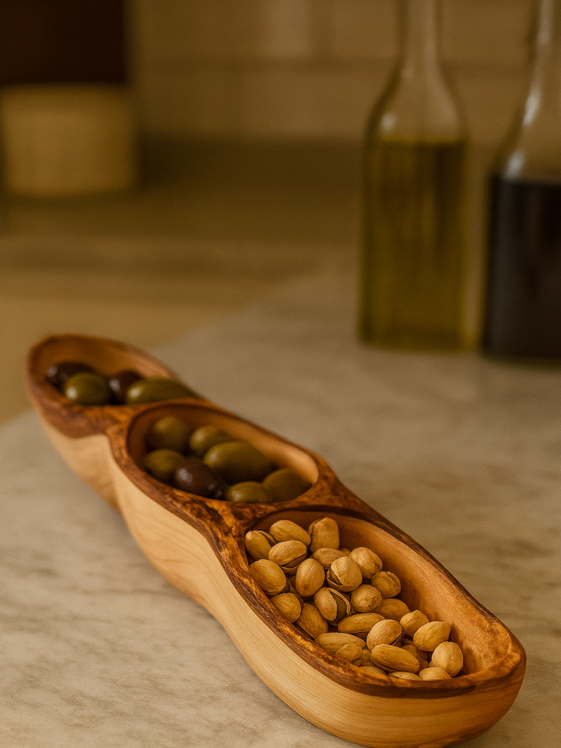 Dreifach-Schale aus Olivenholz – Natürlich servieren mit Stil