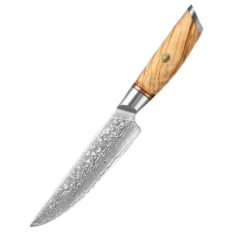 Der ergonomisch geformte Griff aus hochwertigem Olivenholz liegt angenehm in der Hand und rundet das Design mit seiner warmen, natürlichen Maserung stilvoll ab.