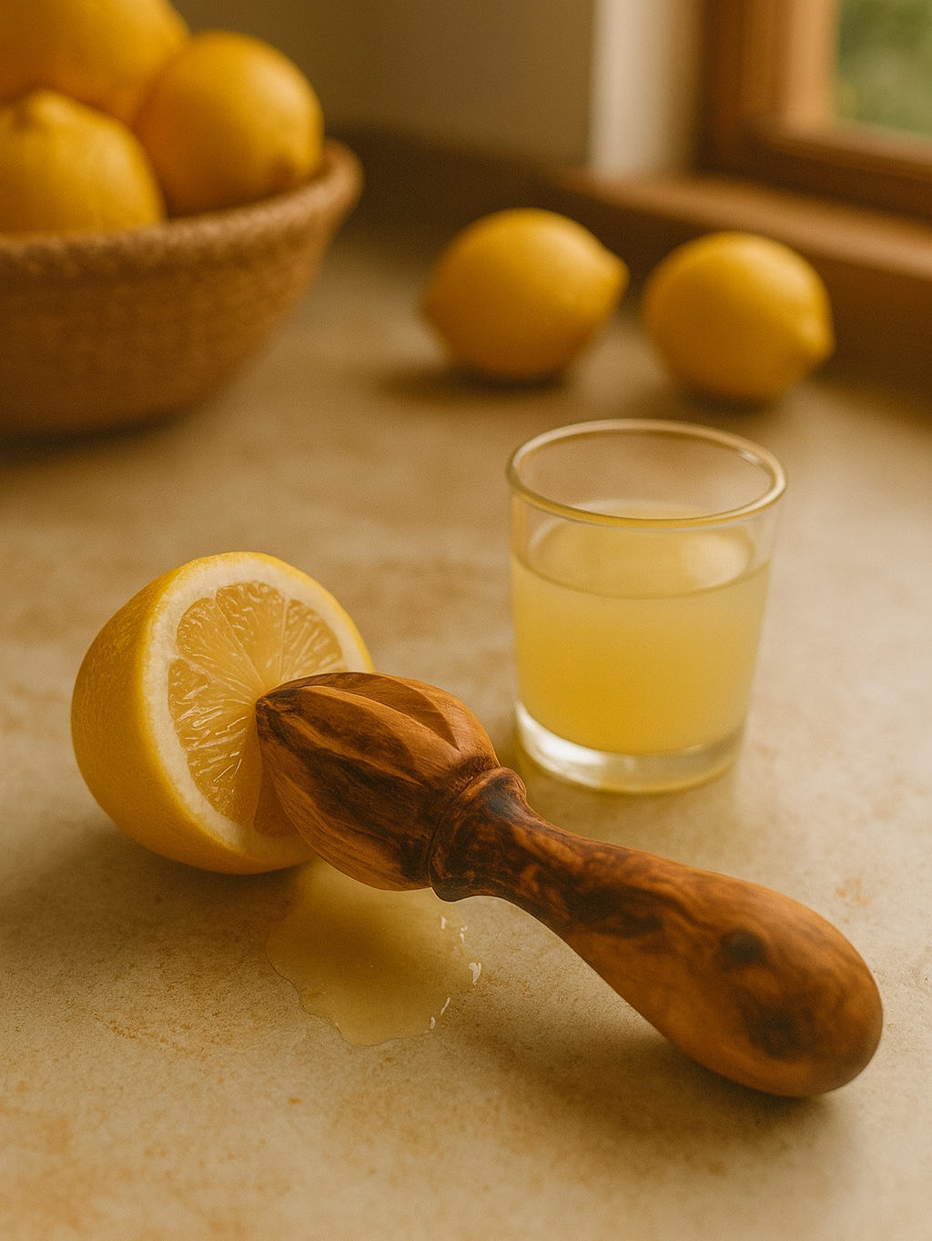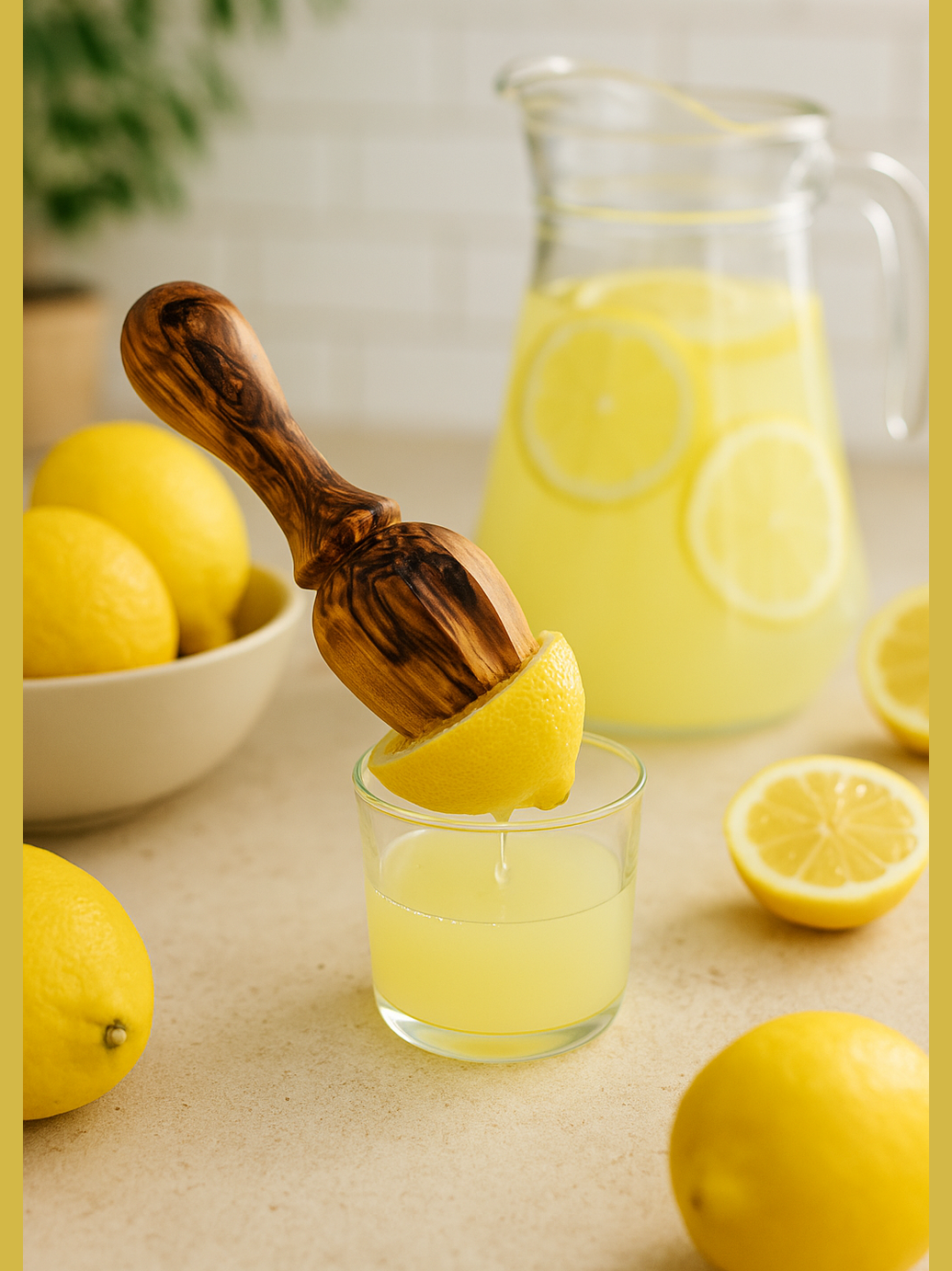 Ob für frische Zitronensäfte, Cocktails oder das Verfeinern von Speisen – diese Zitronenpresse vereint mediterrane Natürlichkeit mit praktischer Funktionalität.